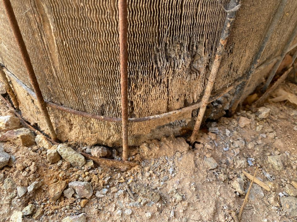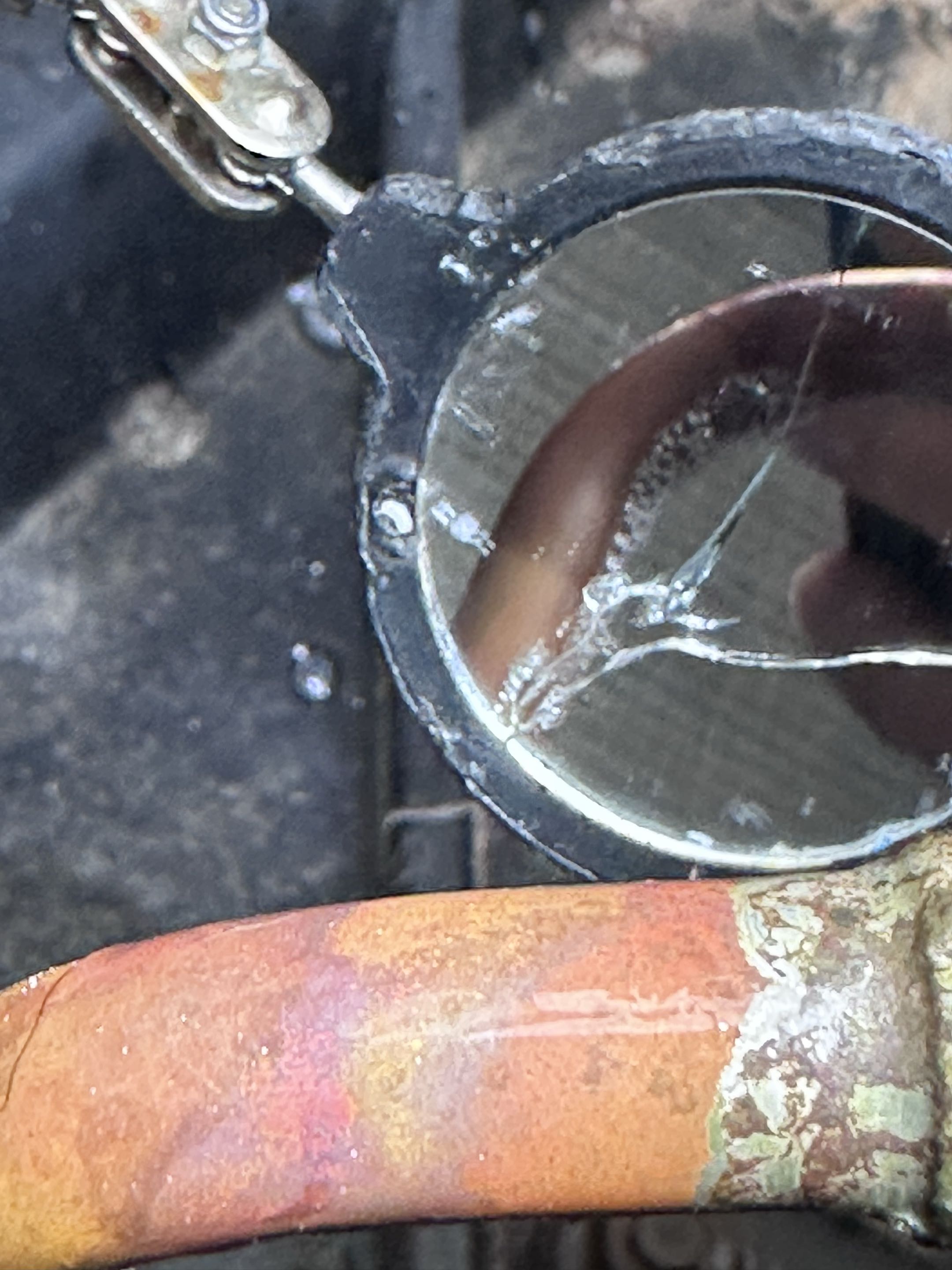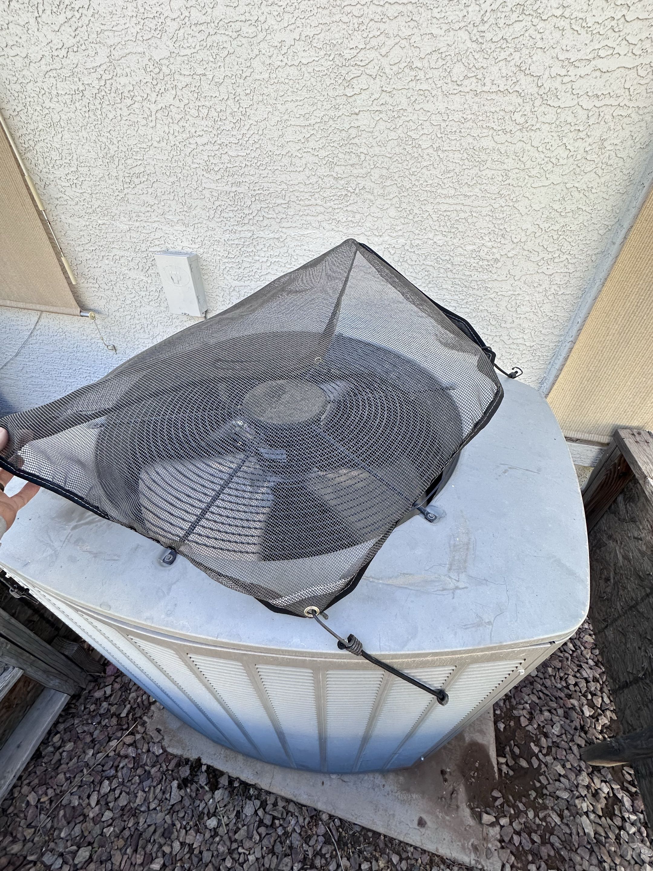 Condenser coil corroded and sunken in. Don’t let your animals pee on coils because it will destroy them. And help the life of your ac by not letting them get buried