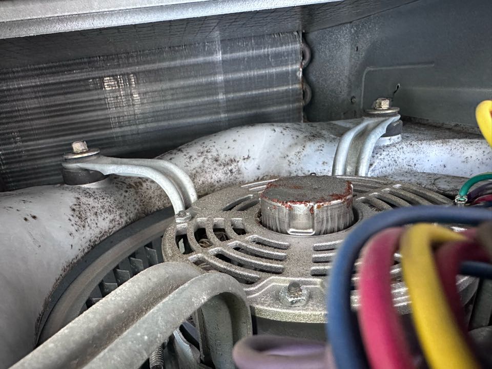 Even though it’s a furnace checkup, I found this drain pan completely rusted out. The amount of work needed on these 23 year old furnaces makes it make sense to really think about replacing the systems. #hvacreplacement, #acreplacement,