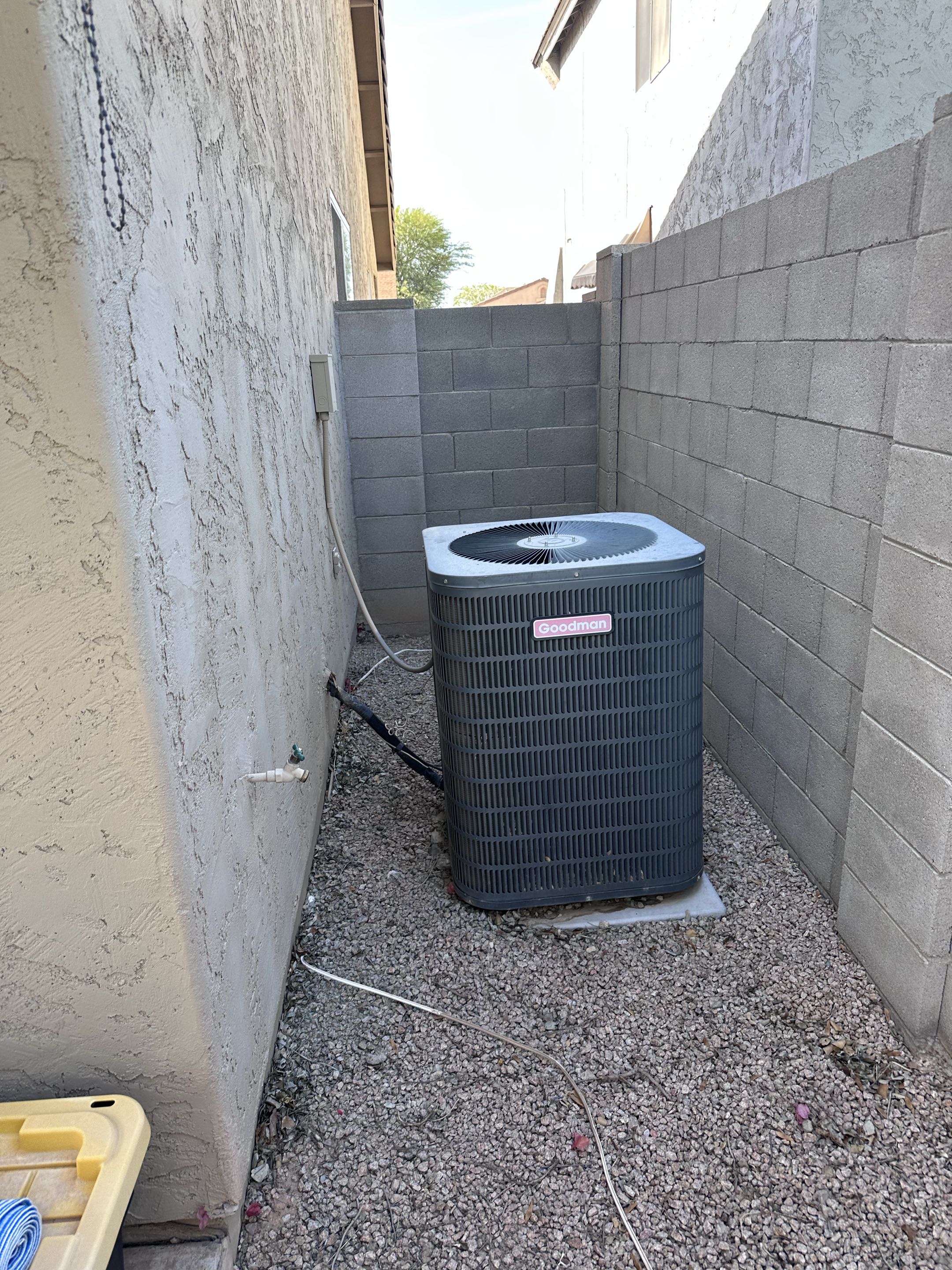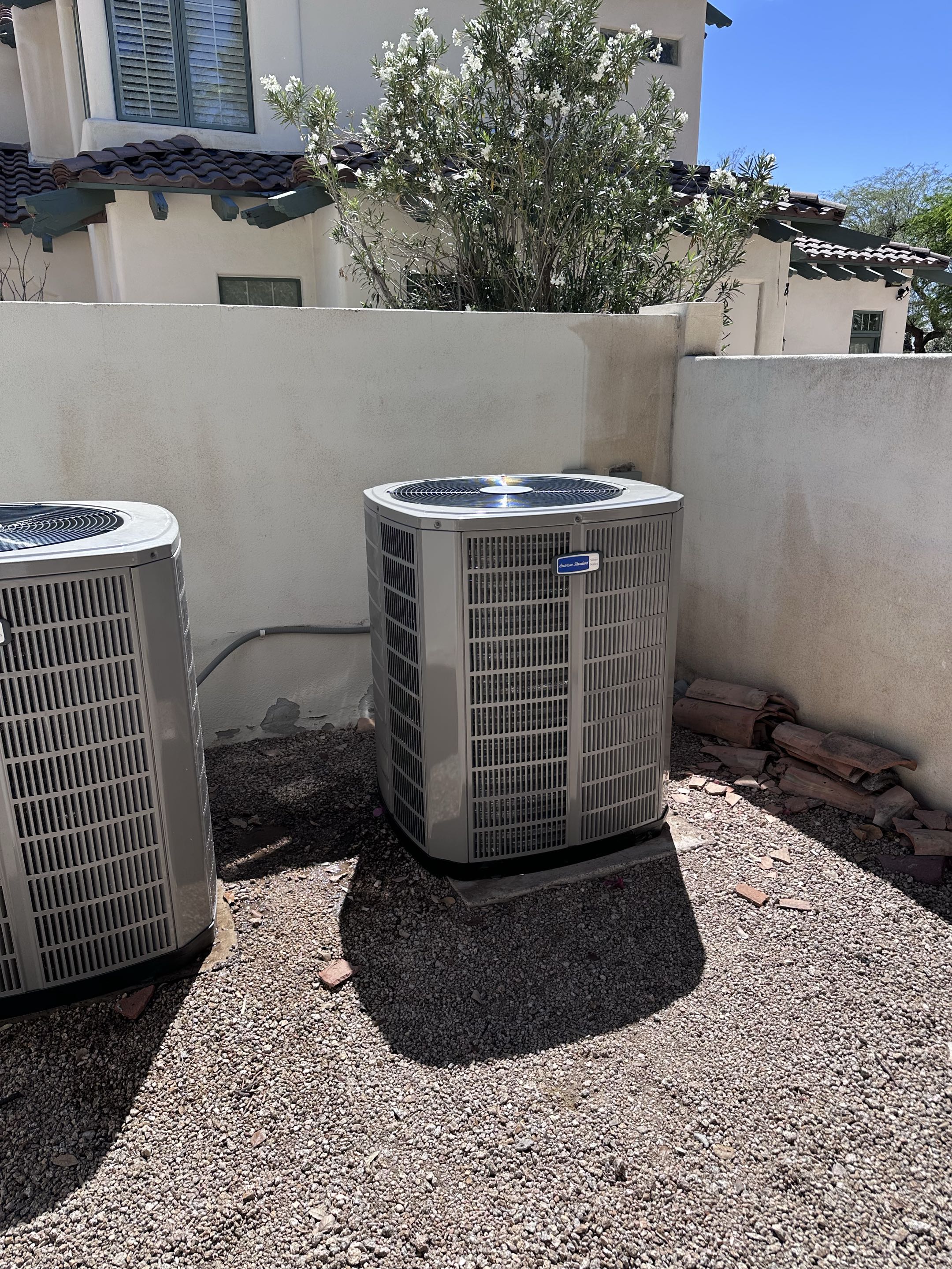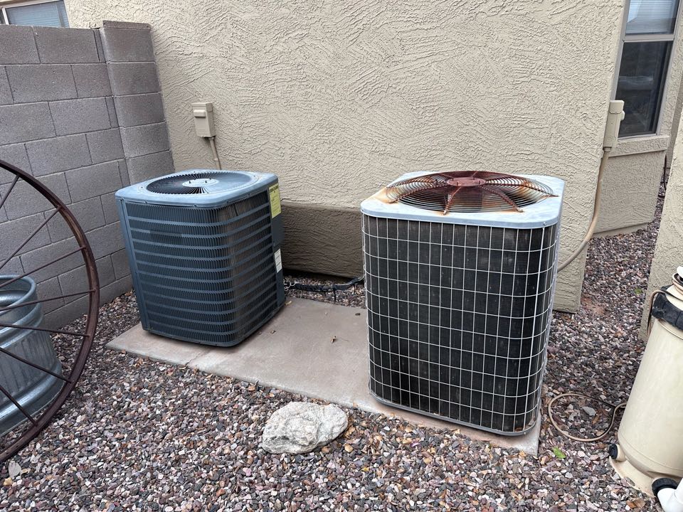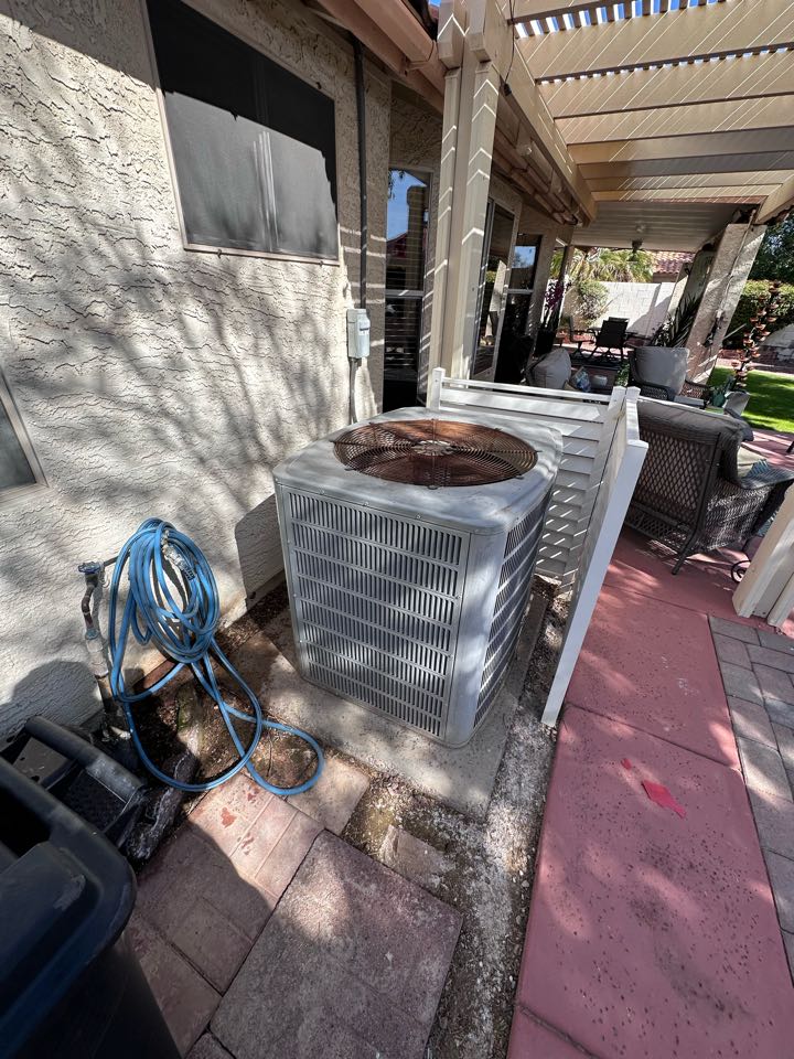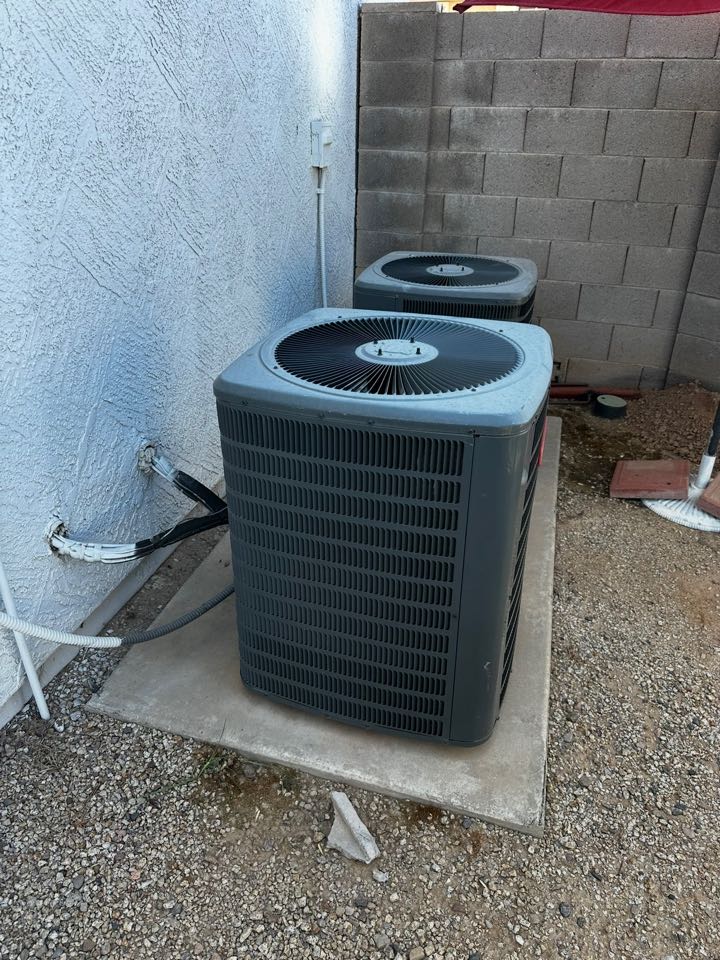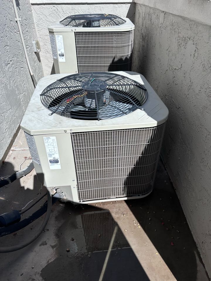 Successfully completed the task, ensuring the customer is well-prepared for the upcoming season. I meticulously repaired the unit on the right, addressing any issues to restore its optimal functionality. Both condensers were thoroughly cleaned, removing any accumulated dirt and debris to enhance efficiency and performance. The system was tested to confirm that it operates smoothly and effectively. This comprehensive service ensures the unit will perform reliably throughout the warmer months, providing consistent comfort and efficiency.